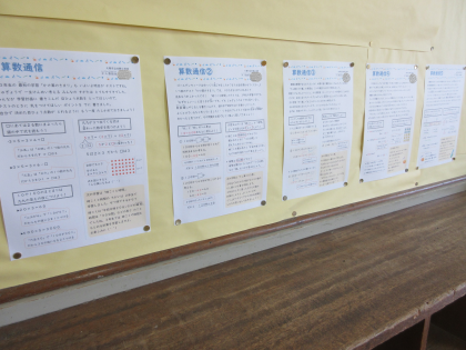 写真は「算数通信」です。単元の終わりごとに発行しており、子どもたちの学びをアシストしています!