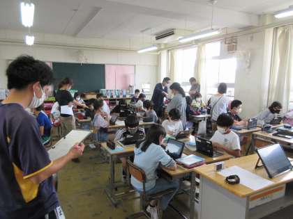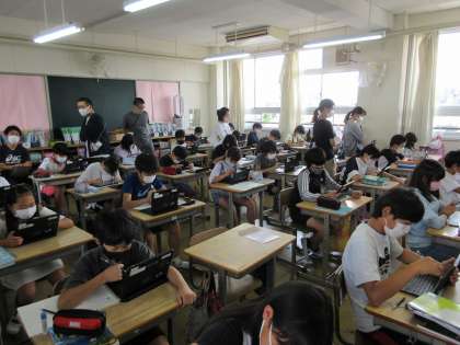 今日はなんと、校内で6本の校内公開授業を行っています。先生どうしが授業を観合います。