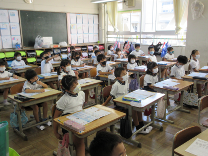 カタカナの学習です。バナナ、ドーナツ・・・、楽しく学習しています。今日9月10日が誕生日の子どももいました。みんなで「ハッピーバースデー!」と拍手がありました。