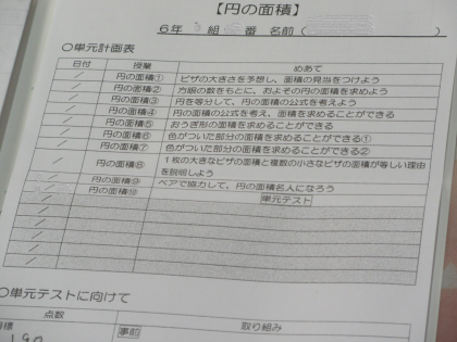 単元の学習スケジュールを確認しています。子どもたち自身が見通しをもって学習できるようにしています。