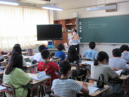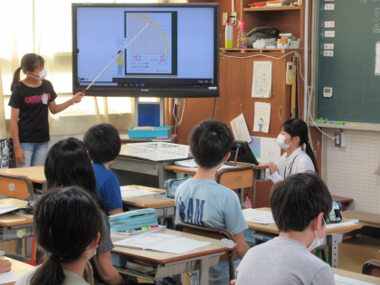 1名は明日までの実習です。これまでの実習の総まとめとして今日、算数の授業を行いました。