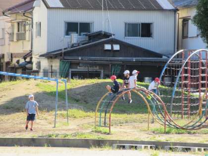 過ごしやすい気温です。8:15、早速運動場には子どもたちの姿が。