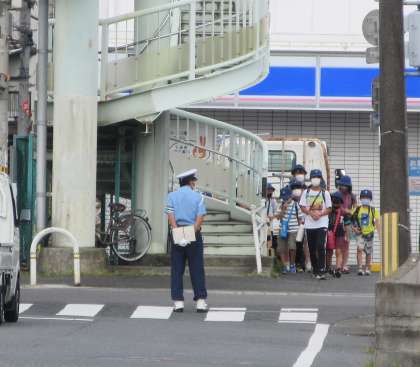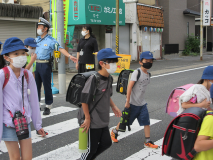今朝は、四條畷警察の方や交通安全協会の方が来校され、子どもたちの登校の安全を一緒に見守ってくださいました。