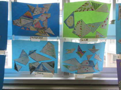 「校長先生、わたしのやつどれか教えたろうか〜!」とたくさんの子どもが作品を紹介してくれました。