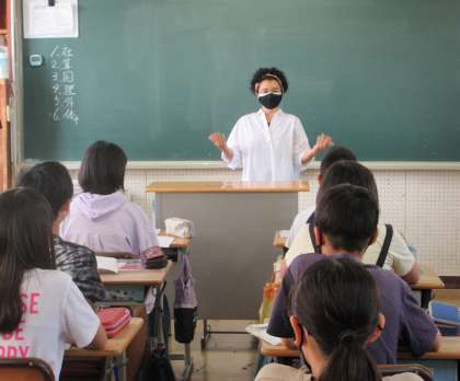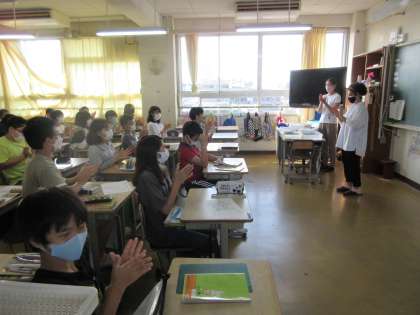 来週から6学年に、新しいAETが来ます。今日はひとことだけあいさつをしていただきました。英語で返す6年生、すごいですね〜!