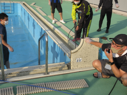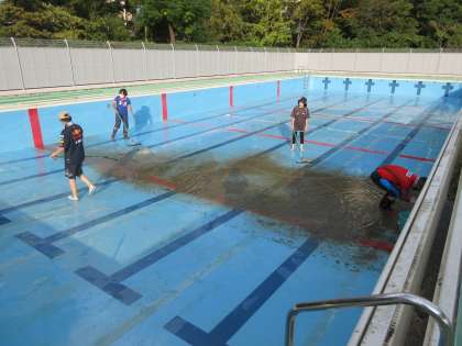 来年の使用に向けて、プール及びプールサイドを清掃しました。