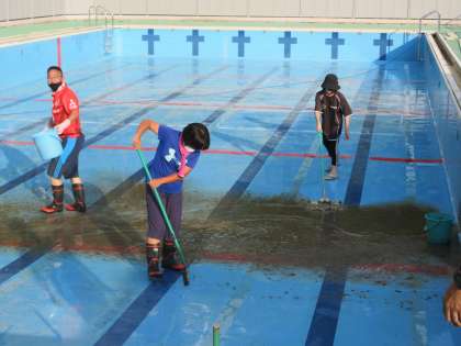 教職員でプール清掃