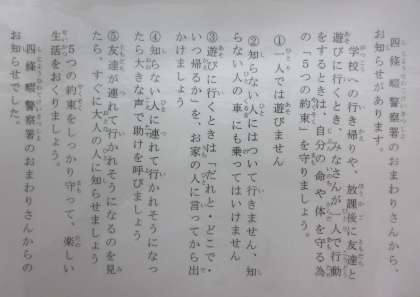 四條畷警察署からみなさんへ 5つの約束
