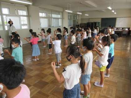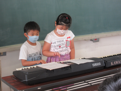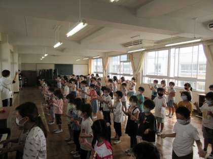 4階の多目的室をのぞくと、1年生が全員でなにやら練習しています。