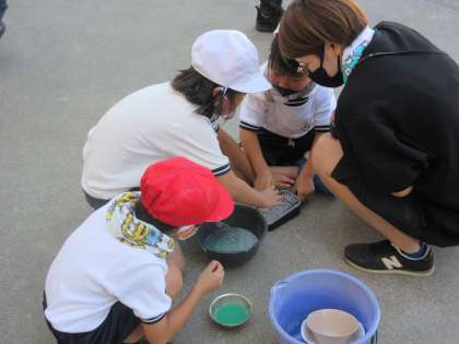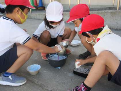 いいお天気の下、泡あそびです。