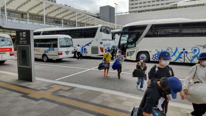 先ほど広島駅に到着し、トイレ休憩です。30分後には新幹線に乗っている予定です。子ともたちはやや疲れた表情ですが、体調は皆良好です。