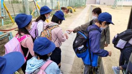 教頭先生や事務職員、保健室の先生などたくさんの人が、4年生の安全な出発のため動いてくれていました。