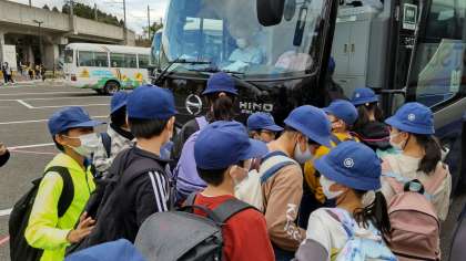 バスで学校へ帰ります。行きに通った道路は事故渋滞のため、帰りはルートを変えて帰ります。