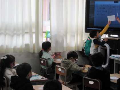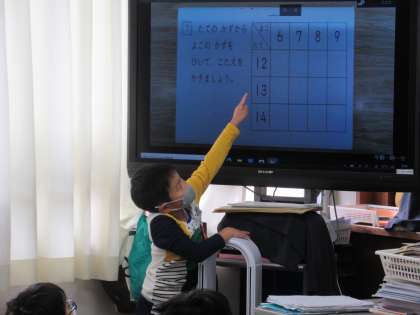 算数です。ひき算をしてますが、なにやら「きまり」を見つけたようです。