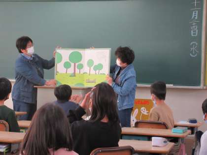 今日は、2年生が、クラスごとにこんぺいとうさんをお招きし、読みきかせを実施しました。
