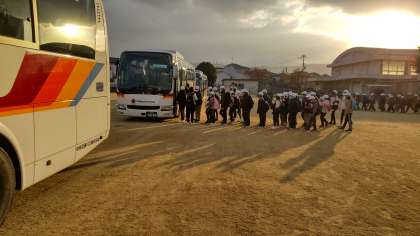3台のバスに乗り、本校複数教員も見送る中、定刻通り出発しました。