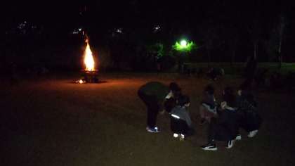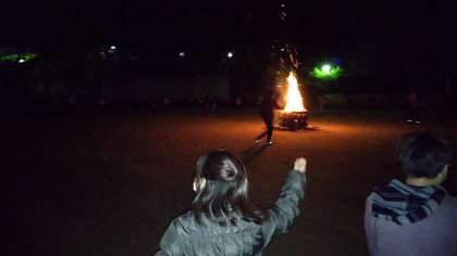 実行委員さんたちがたくさんのゲームを用意してくれていました。盛り上がった最後は、火が私たちに与えてくれたものは何かを考え、そして全員で炎を囲みながら「今日の日はさようなら」と夜空を眺めました。