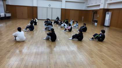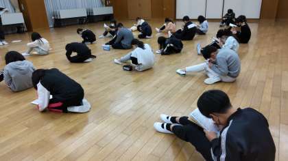 班長会議です。班で話し合ったことを班長として一人ずつ出し合いました。明日に活かせる気付きがいくつも出ていました。