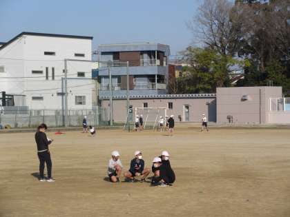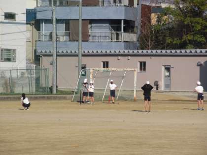 体育の学習「ティーボールに挑戦!打って、走って、みんなで守ろう!」です。ベースボール型の学習です。