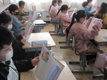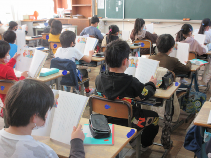 道徳「ぼくのおべんとう」の学習です。読み物教材の世界に入り込んでいます。