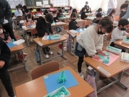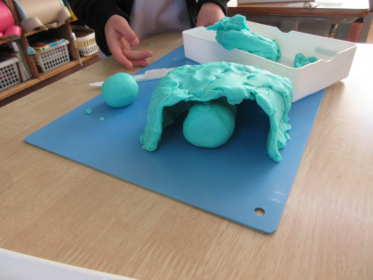 「校長先生、かまくらの中で雪だるまが寝ているねん!」や「校長先生、『セキュリティかまくら』つくってん。かまくらのまわりをトゲトゲにしてん!」など工夫いっぱいです。
