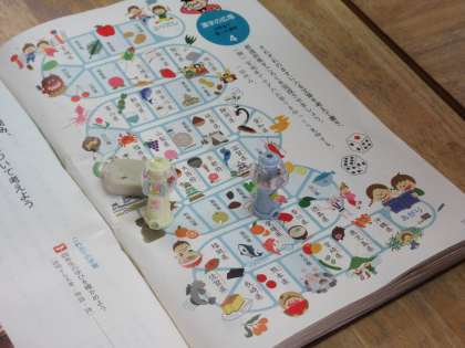 国語科で、すごろくをしています。都道府県の有名なものを挙げながら進みます。