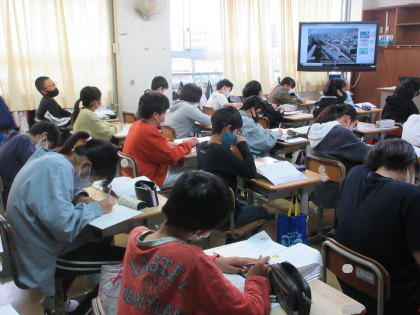 道徳の学習です。ボランティアについての読み物教材に入る導入として、阪神・淡路大震災の様子を確認していました。
