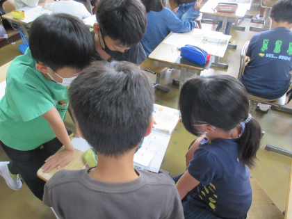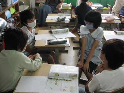 4年生もしっかり話し合い活動です。めあては、「土のしゅるいと水のしみこみかたには、どんな関係があるのか調べることができる」です。