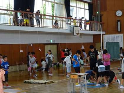 今日の午後は、準備の仕上げの時間です。教室だけではなく体育館や多目的室でもしています。体育館は、例年のように6年生がお店を開きます。バスケやサッカーや野球やロールを使ってなどなど。賑やかです。