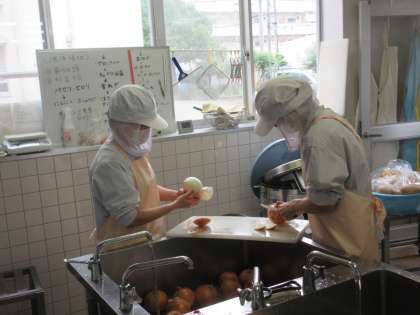 今日のホームページは、給食室の様子をお届けします。