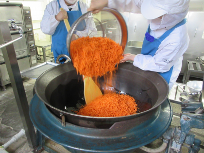 「しりしり」とは沖縄の方言で「せん切り」の意味だそうです。にんじんを細切りするときの「すりすり」という音からこの名前がついたと言われています。