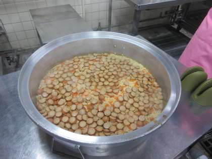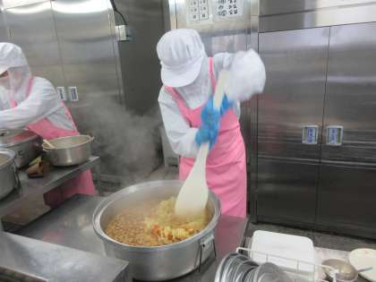 カレーピラフの完成です。これをいくつ混ぜるのでしょうか・・・。大変な作業です。