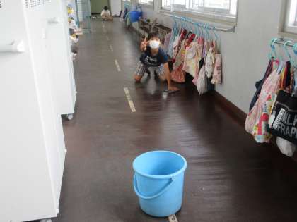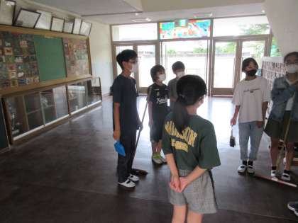 6年生は、そうじ終わりに担当の先生と終わりを確認して、あいさつをしていました。