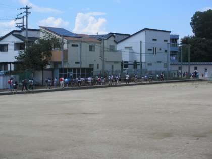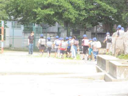 地区児童会のあとは、集団で下校です。教職員も一緒に各地区まで行きます。