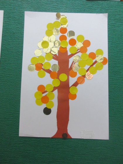 給食委員会の取組みとして、ざんさいがなかった日には「食缶からっぽの木」にシールを貼って、「花」をつけていきました。