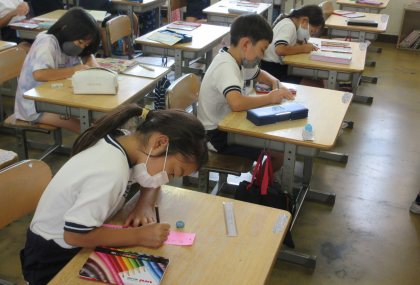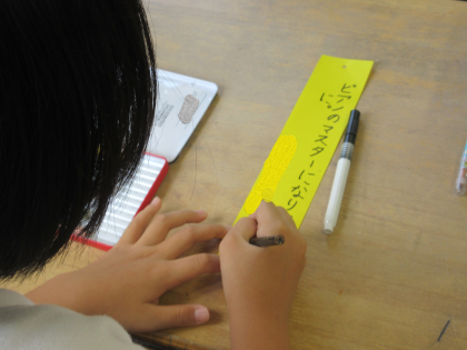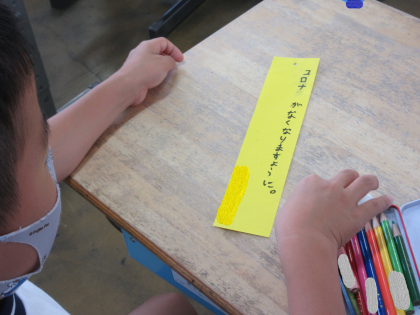2年生の教室です。今日は七夕です。ねがいごとを書いていました。一人一人見ていて、ほっこりするねがいごと、ドキッとするねがいごと、いろいろありました。