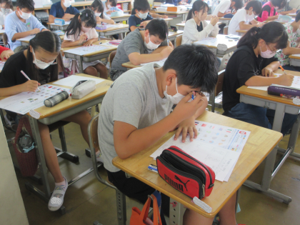 外国語のテストです。しっかりききとっています。集中しています。