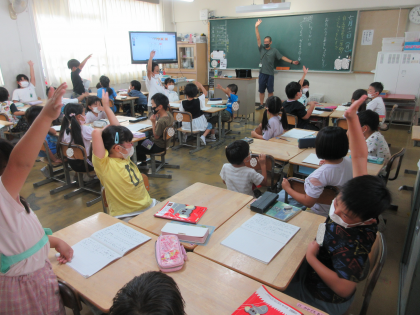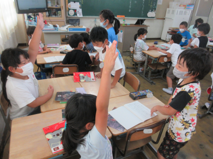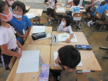 国語の学習です。本を紹介し合っています。楽しそうです。