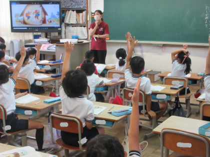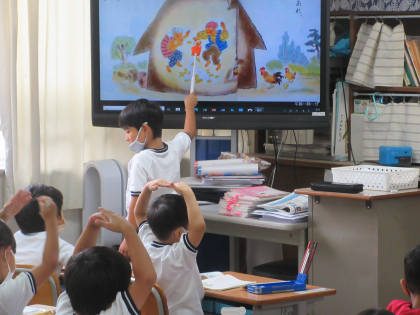 国語「おむすびころりん」の学習です。挿絵からもお話の世界へ入り込みます。