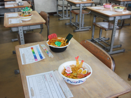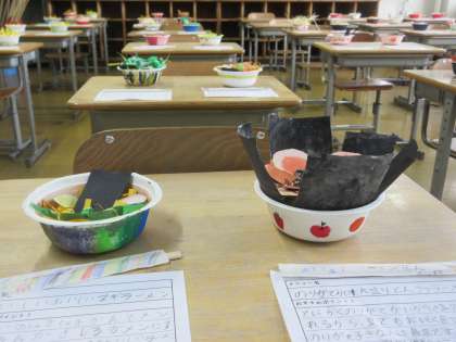 ハサミを上手に使っていますね。器の模様もおしゃれです。