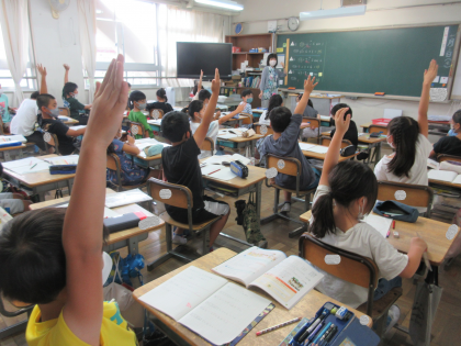 算数の学習です。しっかりとした挙手、しっかりとした発表、そして拍手です。