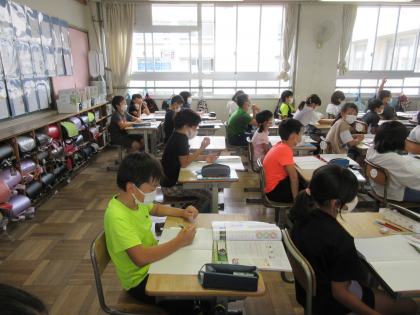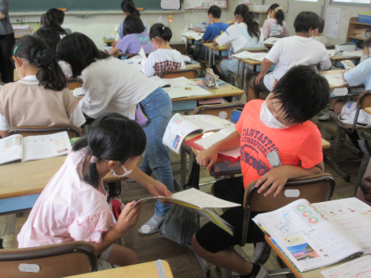 社会の学習です。以前の資料まで立ち返って考えが正しいかどうか確認します。