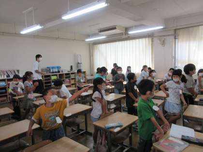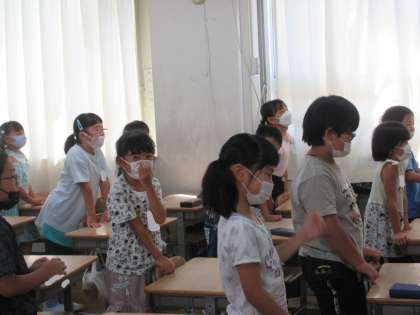 スイミーの合唱中、ハプニングが・・・。教室中大爆笑の様子です。マスクをしていてわかりにくいですが、写真で伝わりますでしょうか。