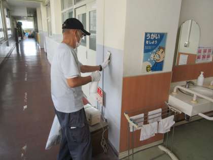 校内定期消毒作業ですが、いつも以上に重点的にお願いしています。