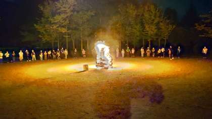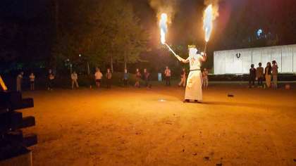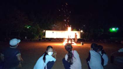 キャンプファイヤーです。「うわ〜!○○先生ってこんなことできんねんや〜!」と歓声がわきました。