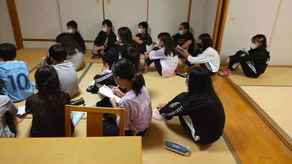 一日の終わりに班長会議です。班長たちの振り返りの中から二日目の課題もしっかり確認できました。