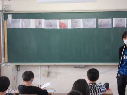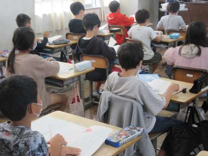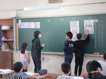 とてもおもしろい学習展開です。教科書の挿絵を並び替えます。正解していると大喜びです。そして、まとまりごとにまとめます。