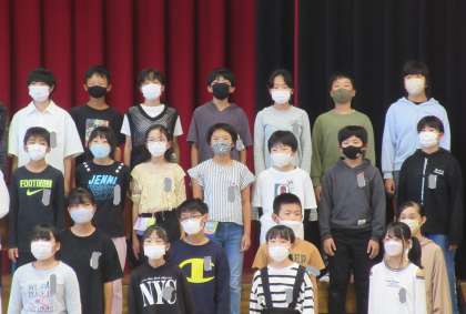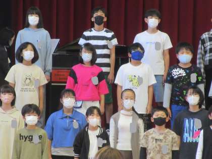 斉唱「ありがとう」、入場から歌う時の姿勢どれをとっても氷野小学校最高学年の自覚と風格を感じました。