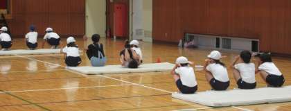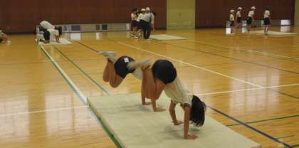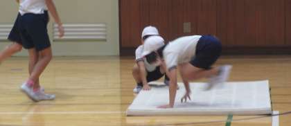 「ゆりかご」や「かえるの足うち」など感覚をつかむ運動です。