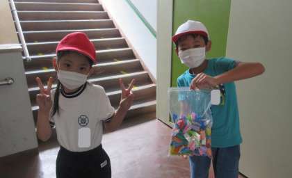 聞くと「家でおじいちゃんとおばあちゃんも折ってくれて、『学校に持っていってごらん』ということで6年生に渡そうと思って」とのことでした。